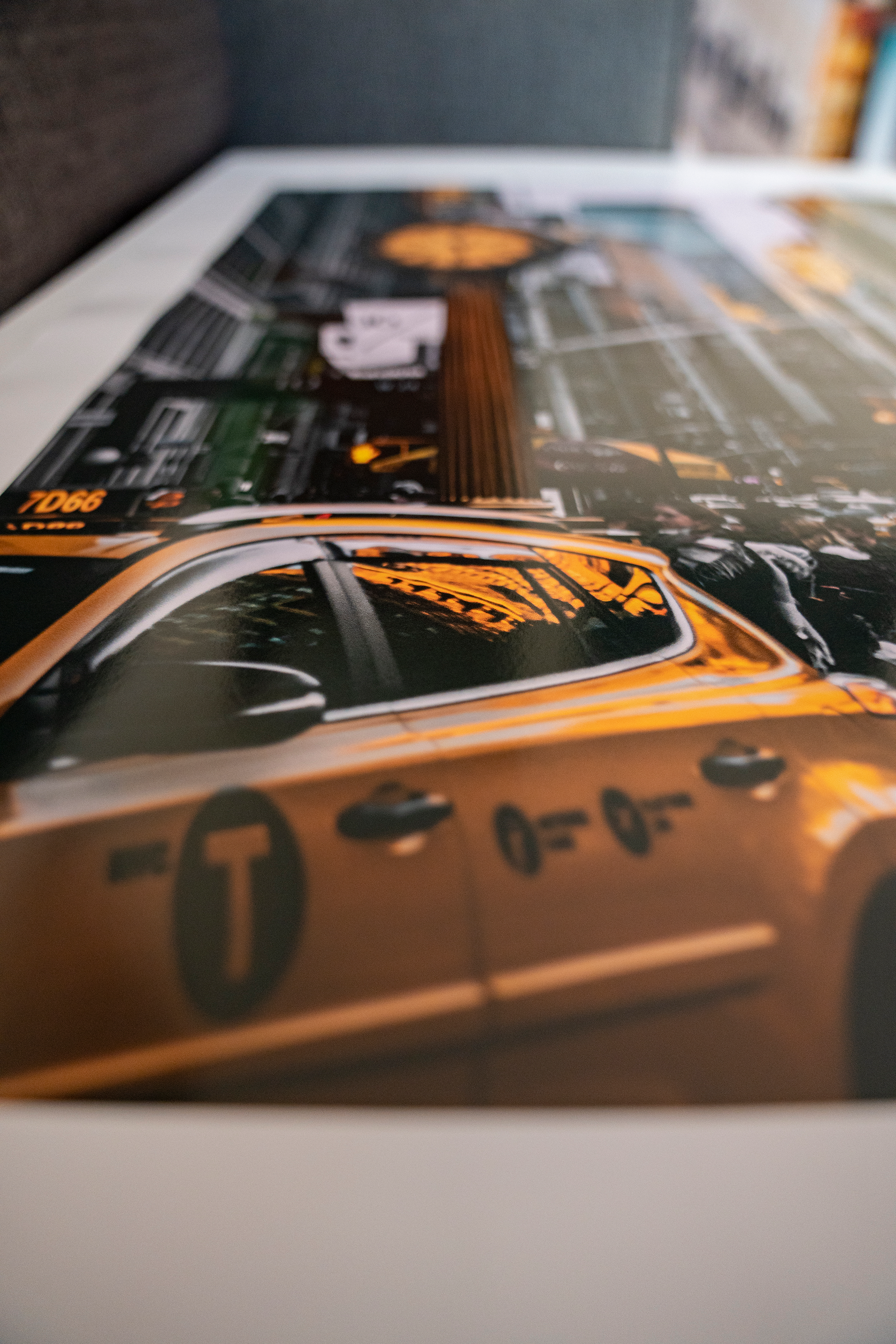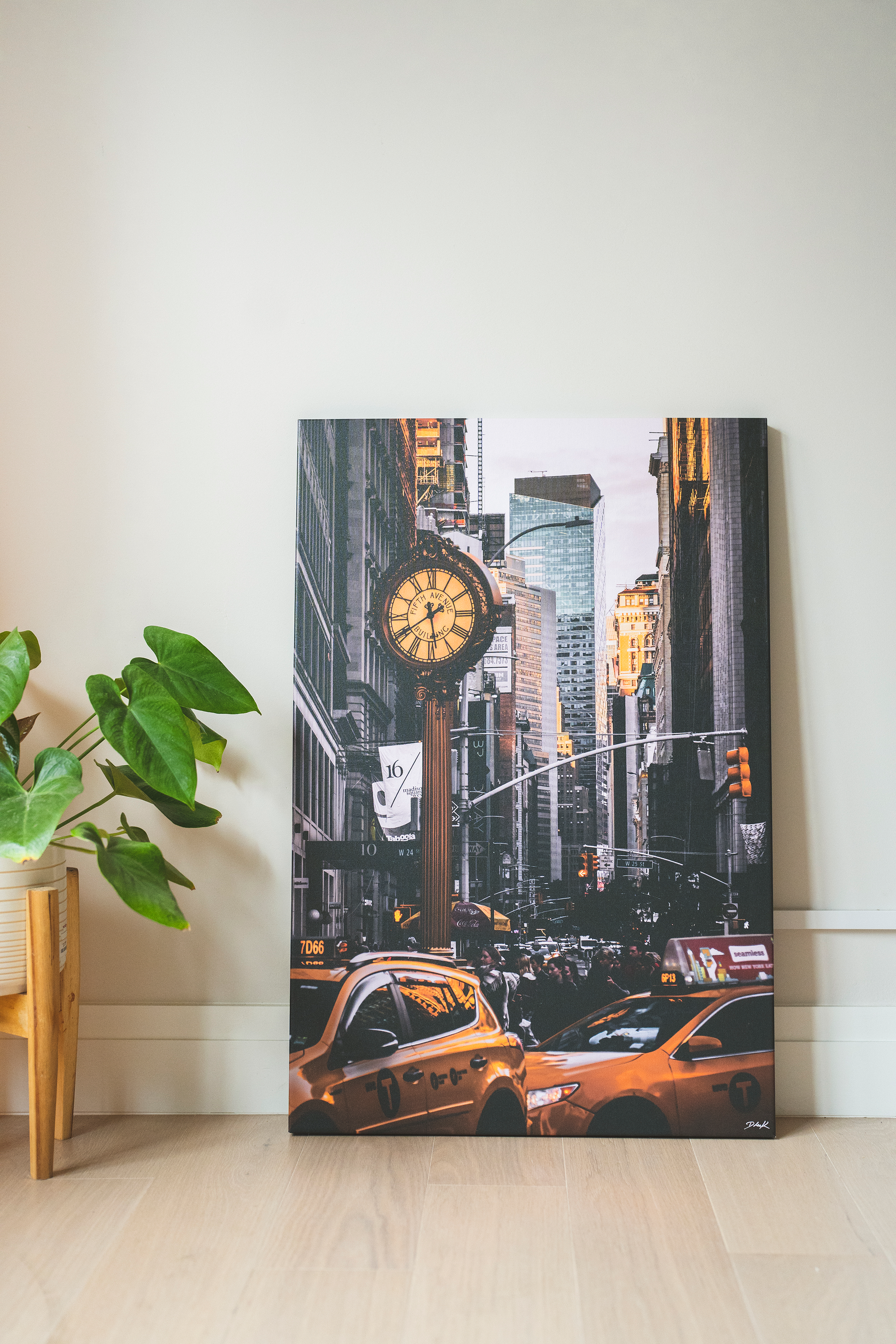 It's one of my personal favorite pictures I've ever taken, with the classic NYC yellow cabs along with the bustling NYC people on their way home. This warm-hearted photo will brighten any home or apartment.