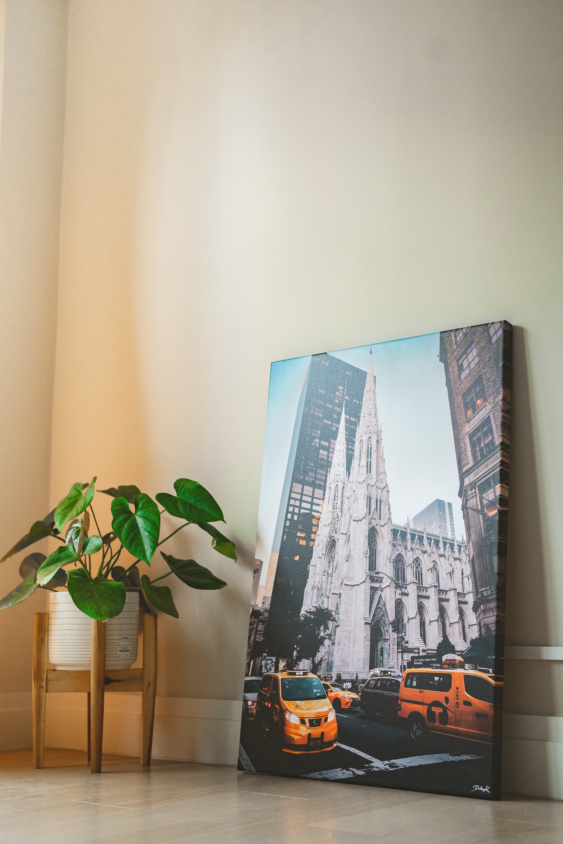 Framed canvases come ready to hang. Loose canvas prints & photo paper prints come with a white boarder and you have to frame them yourself.