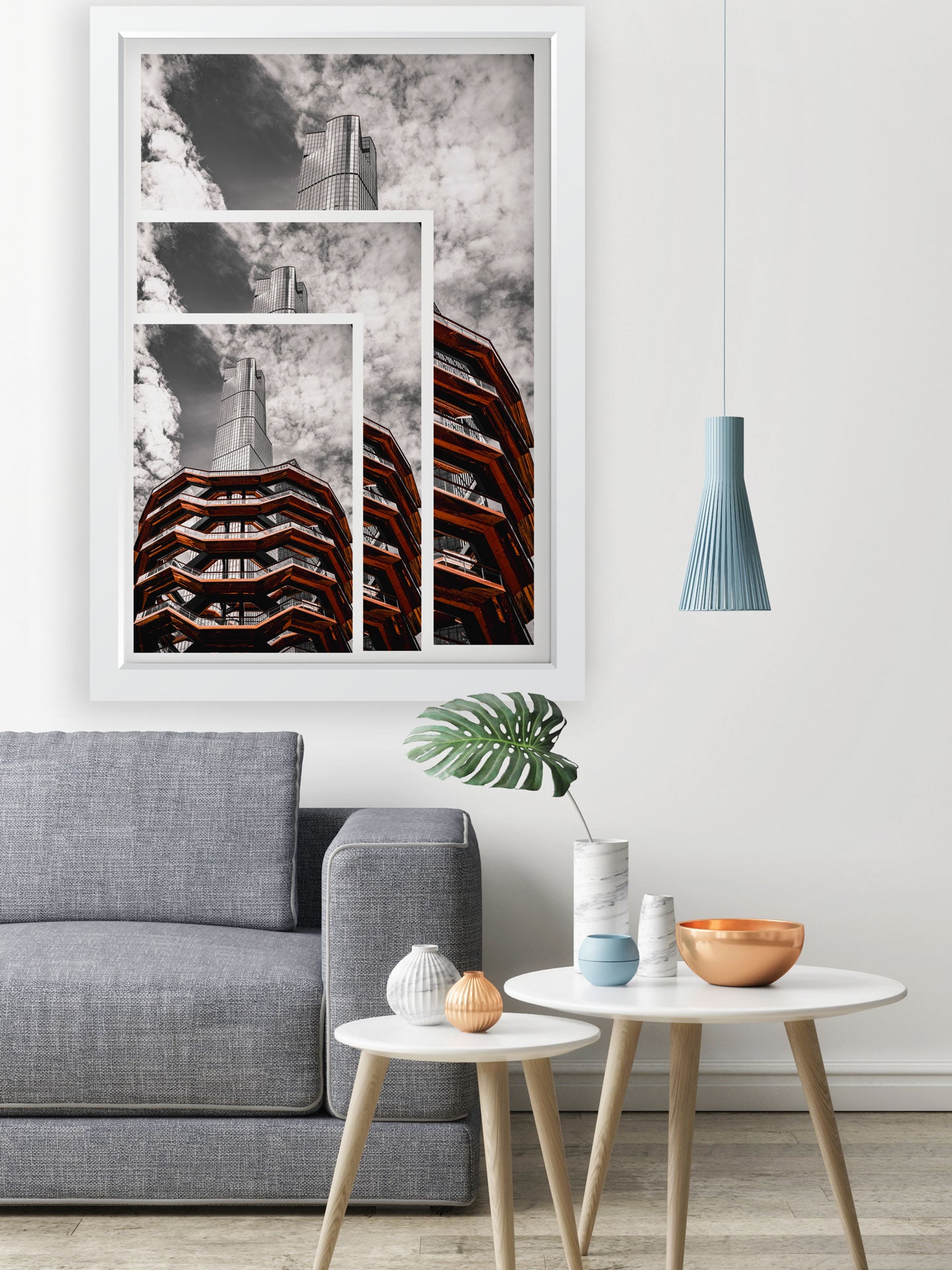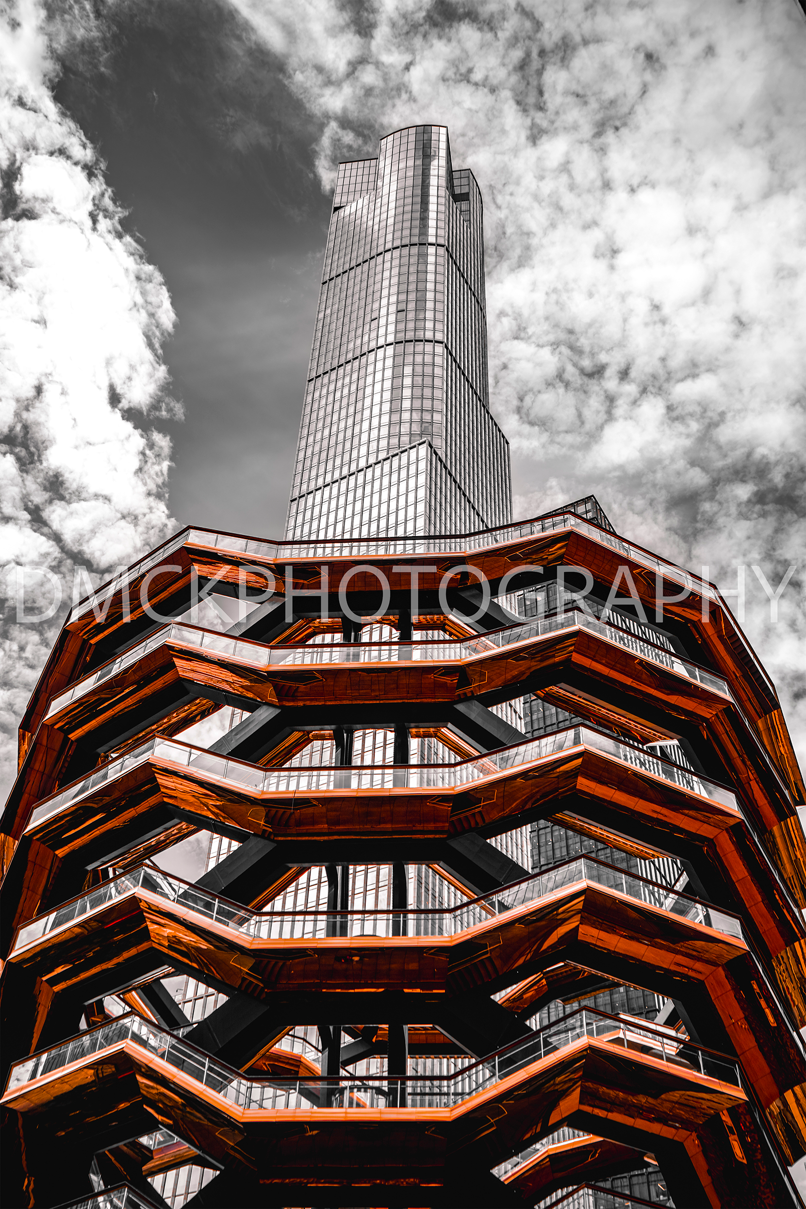 A new modern NYC attraction. The Vessel brings thousands of tourists to NYC to see its unique beauty. Located on the west side of Manhattan in Hudson Yards, this highly contrasted photo is such an eye catcher it will be sure to light up your home.